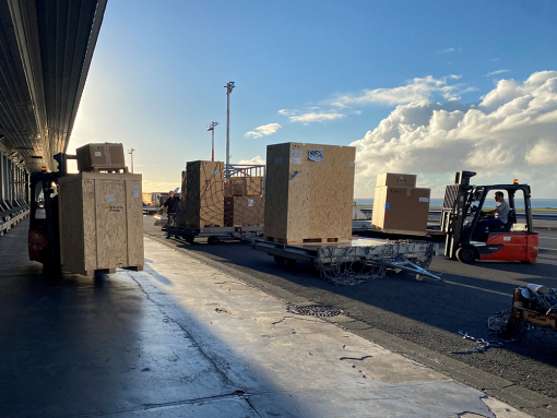 Demandant un traitement et une manipulation délicate de part la fragilité de la marchandise, les équipes du FRET démontrent une nouvelle fois l’importance de leur rôle dans l’approvisionnement du territoire.